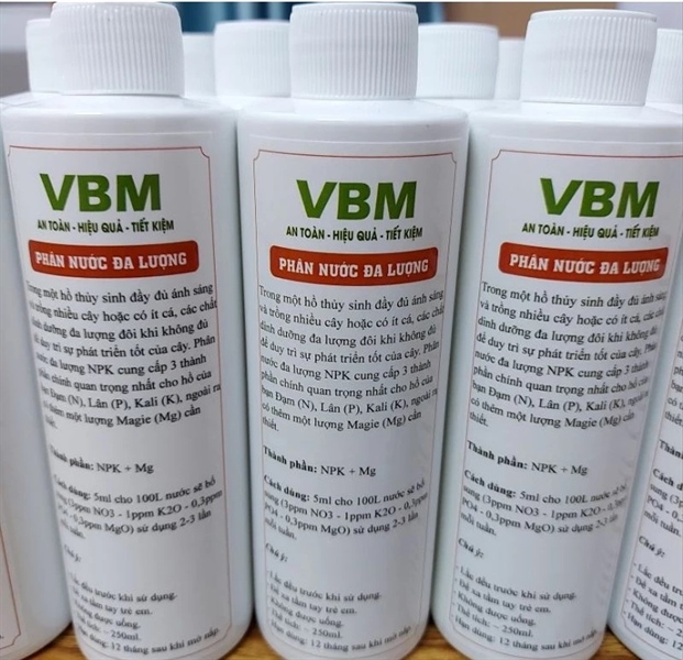 Trong một hồ thủy sinh đầy đủ ánh sáng và trồng nhiều cây hoặc có ít cá, các chất dinh dưỡng đa lượng đôi khi không đủ để duy trì sự phát triển tốt của cây. Phân nước đa lượng NPK cung cấp 3 thành phần chính quan trọng nhất cho hồ của bạn Đạm (N), Lân (P), Kali (K), ngoài ra có thêm một lượng Magie (Mg) cần thiết. Nên thay càng nhiều nước càng tốt để loại bỏ dưỡng cũ trong hồ trước khi dùng chai này.